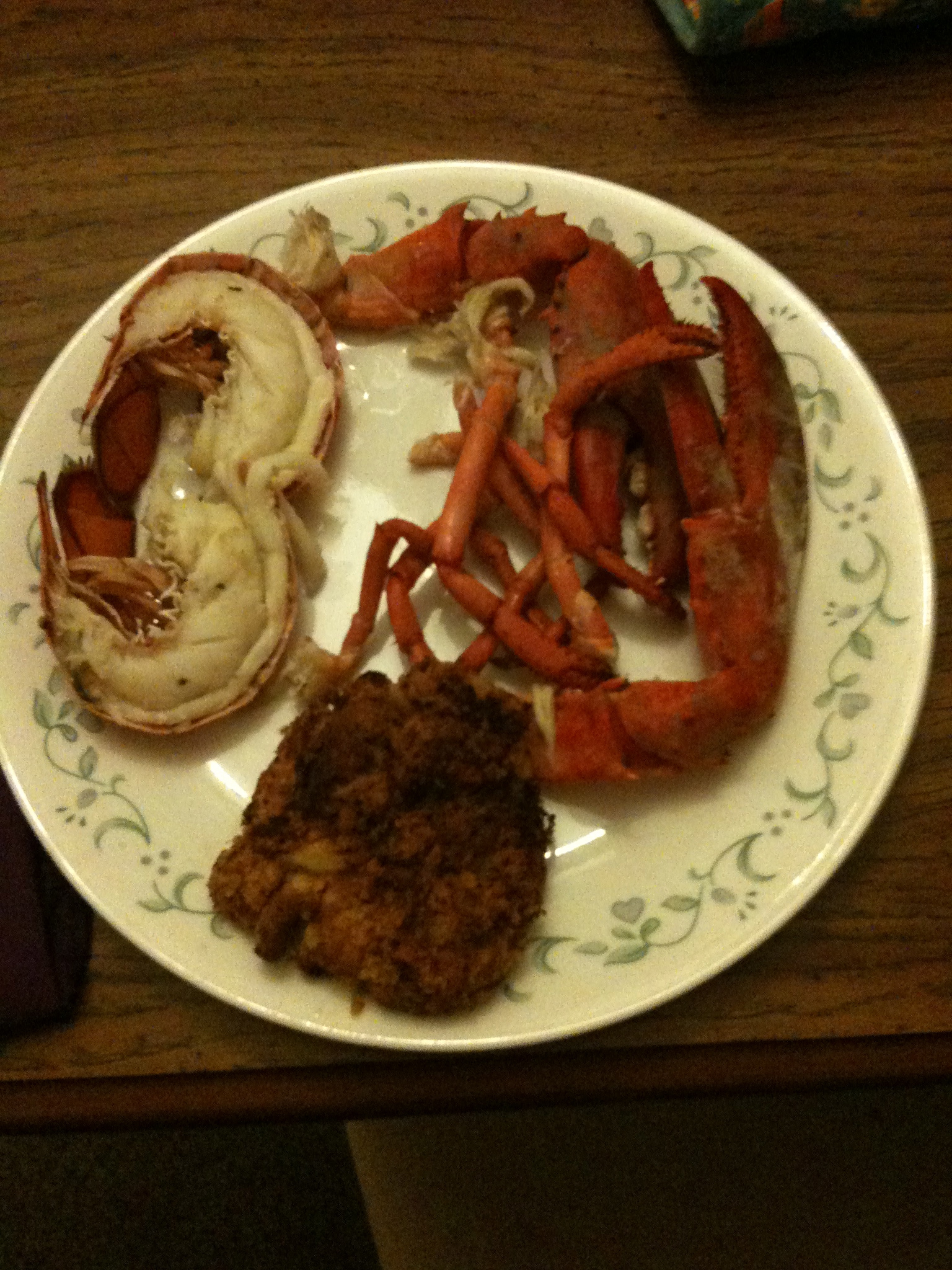 So I thanked them for sacrificing their lives so that mine may go on. And then we made a tray of roasted squash, zucchini, carrots and onions and melted butter and lemon juice dipping sauce. (We managed to make the meal carb free, at least.)