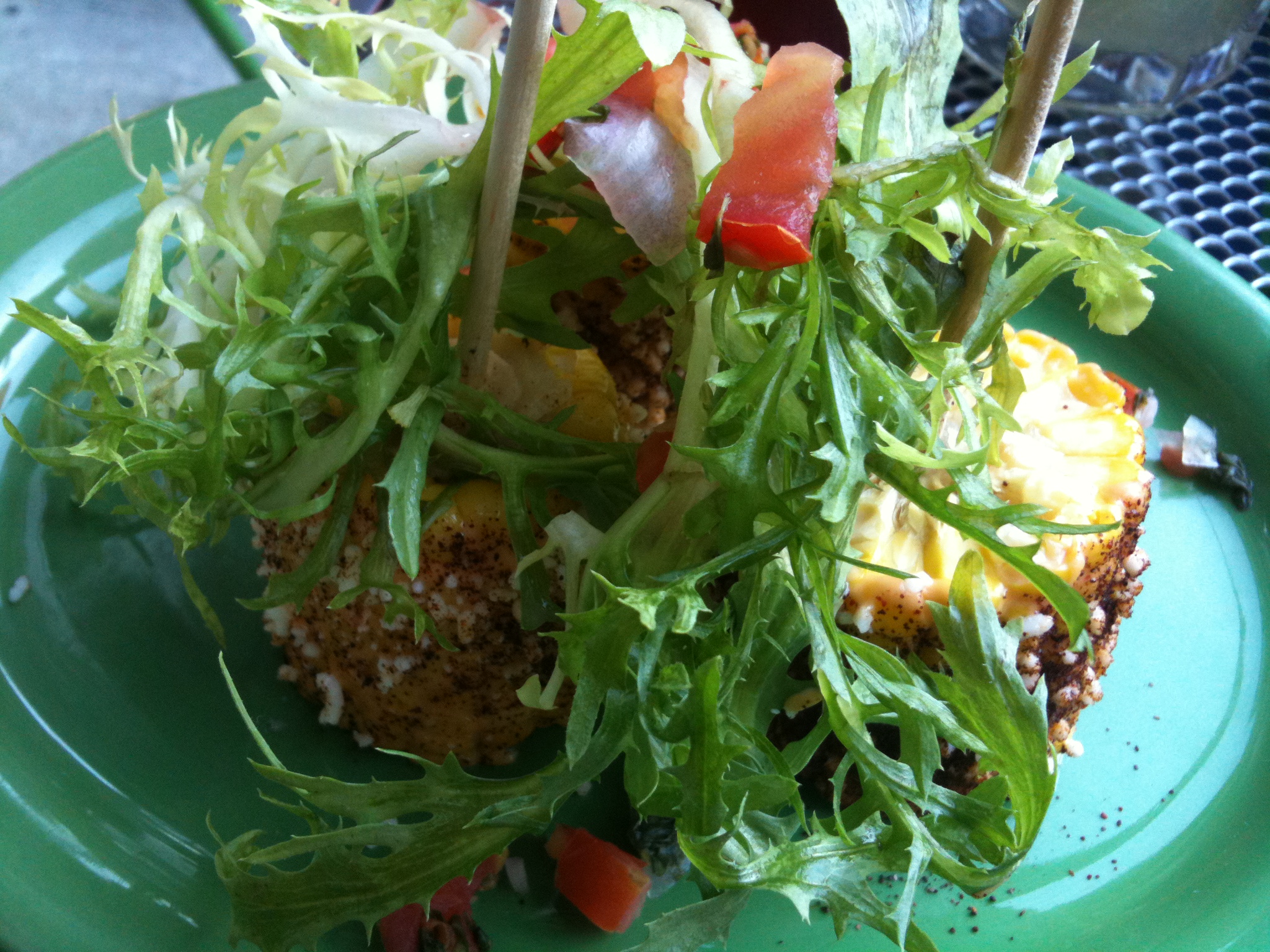 This one on the left is Marcel Duchamp’s To Be Looked At (from the other side of the glass), with one eye, close to, for almost an hour. Isn’t that a remarkable title? It amazing how 3D this looks! Then Kyle took me out for a belated Birthday dinner in Hell’s Kitchen at a yummy Mexican Restaurant El Centro. These are my vegetarian tacos and mexican corn on the cob. Hummm….this Mexican food looks so different from the kind I’m used to in Arkansas. As in, I seem to be able to identify the substances on my plate–it’s not just one massive plate of melted cheese! Ha. Ok peace out…more NYC citygal posts to come ASAP.