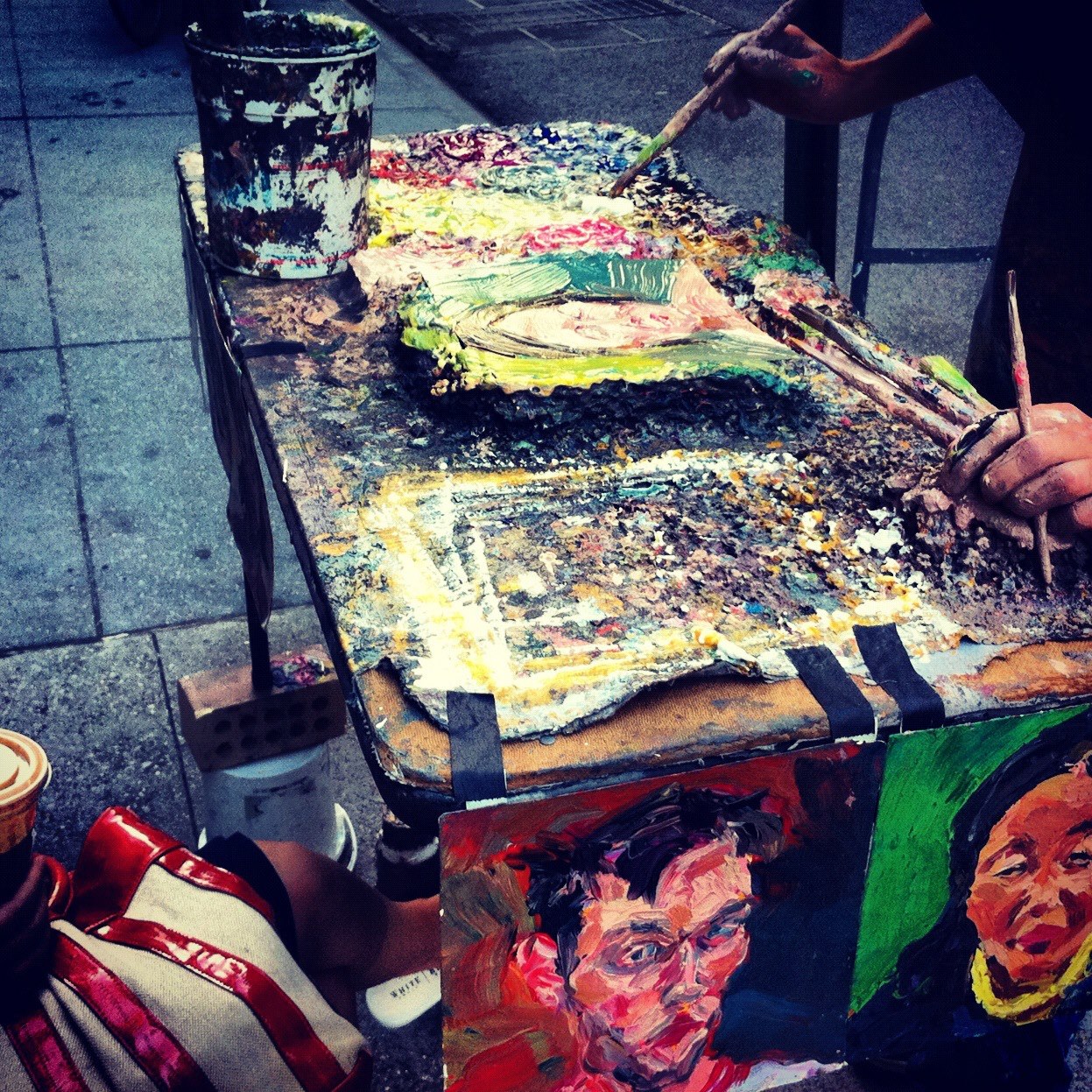 A few days later, it was time to pack up and head back to the big apple. It was a welcomed sight, complete with great friends and perfect summer turning into fall weather. And it was time for more celebrating. Let me preface this portion with, I don’t really drink and stay out until three in the morning anymore, but I guess it was time to start! After an audition for Maggie in Cat on a Hot Tin Roof (which I am born to play by the by), I spontaneously spent all day with my best friend, who had already insisted that he be with me when the clock strikes midnight on my birthday. (Despite the fact that I was actually born at 1:36 PM). He walked me to my present which was having a street artist, who sits most days outside of MoMA paint my portrait. It was incredible. Who has sat for a portrait these days? I was there for an hour as he painted layer upon layer of color onto a 9 x 9″ square of paper. Kyle wanted me to have painting, capturing the last day of my twenties. (I actually have a pencil portrait of me when I was 16, so it seems that I do this every 15 years or so!) His portraits all had an air of morose about them, so I tried to look up and give the slightest smile but it still came out as it did–honest, beautiful, tragic. Next time you’re in the city I highly recommend visiting MoMa and the artist Mark R. Nilsson at his portable studio on the street. You’ll walk away capturing a moment in time, owning a lovely piece of art, and supporting a true artist.