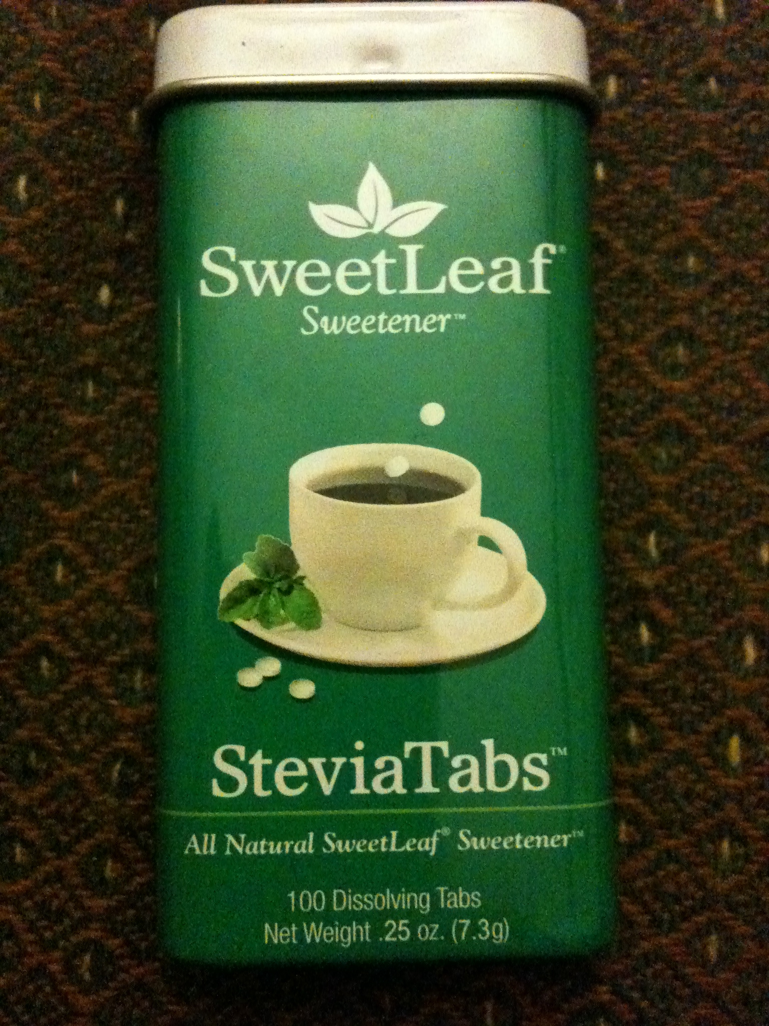 I love these Stevia Tabs I found at the health food/grocery store in my neighborhood. I bought this for about $6.50. There are 100 tabs, so this ought to last me a long time. I have just been keeping this in my purse so I have it to add to hot tea etc. Believe me, I wish I was adding it to iced tea, but that is, sadly, something NYC is missing. (And I’m missing too. You really can’t get iced tea anywhere–and free refills? Forget about it!) Also, no individual little packets and I think I can recycle this metal container when it’s empty.